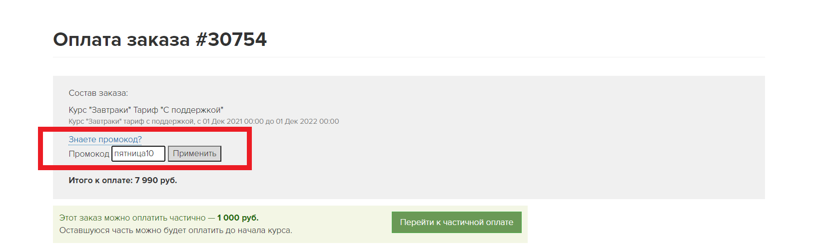 4. Система автоматически рассчитает стоимость курса с учетом скидки