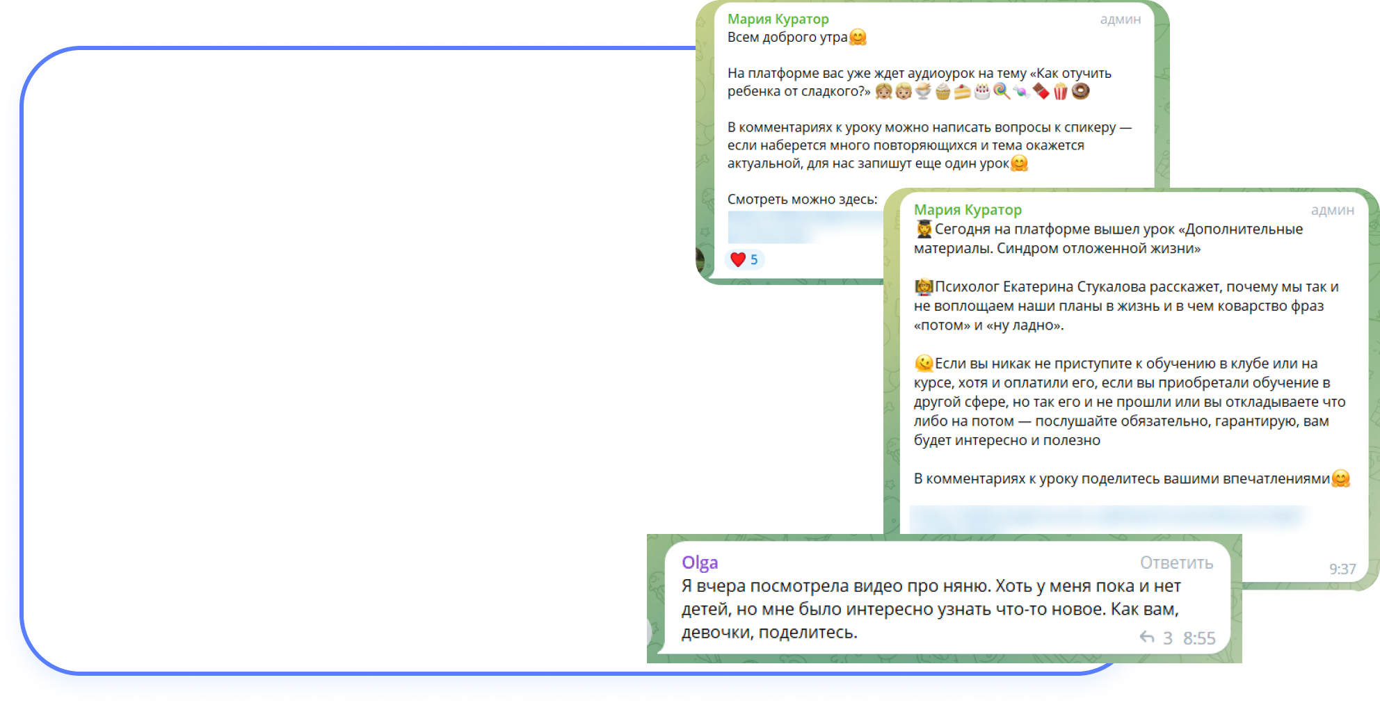 Поддержка кураторов и теплое общение в кругу единомышленниц